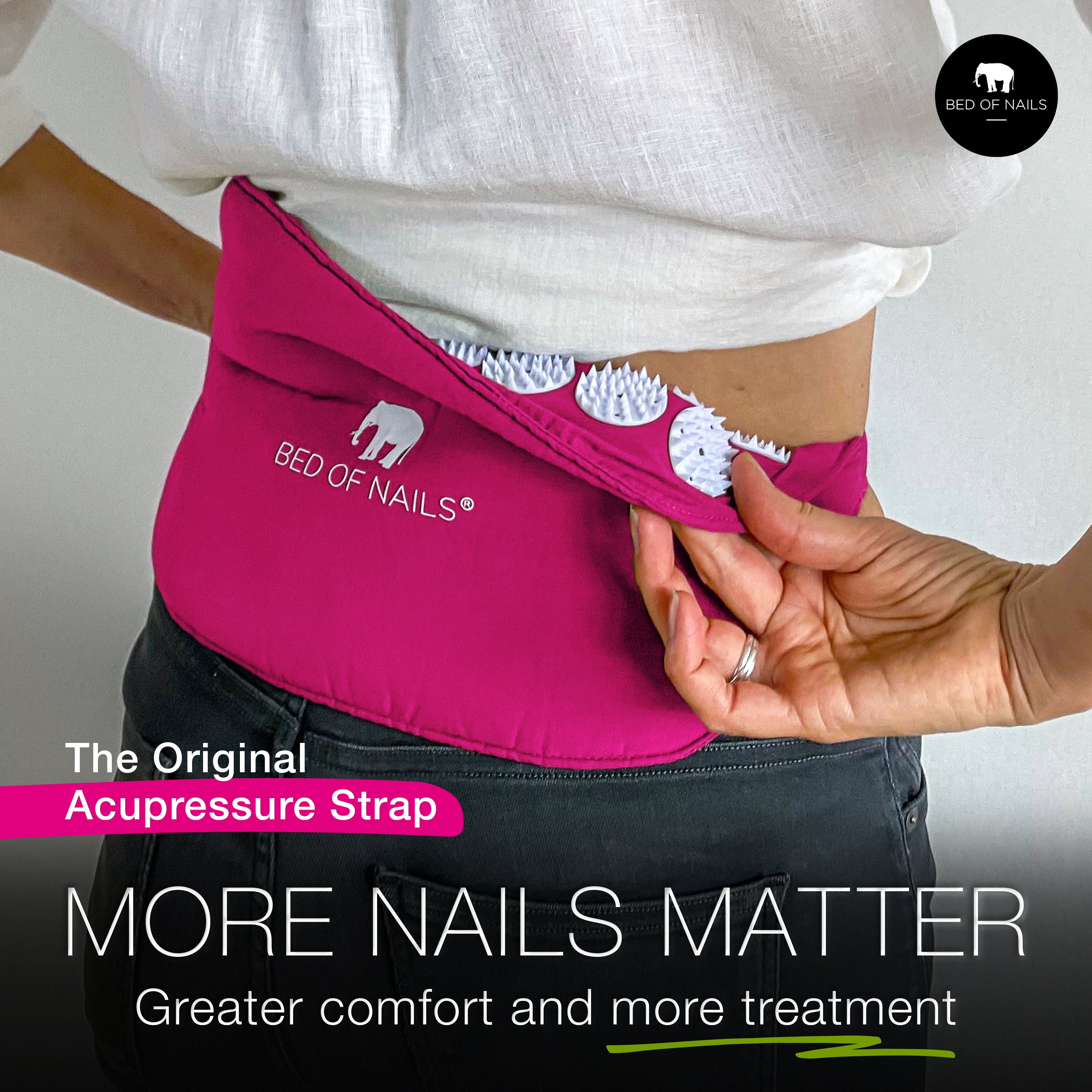 The BON Strap allows you to reach those particular spots on the body needing extra healing and targeted treatment. Apply the nails directly to the area of your body you want to treat, against bare skin or through light clothing, and use the ribbons to tie around to keep the strap in place. A few suggested areas for use, but not limited to. Tie around: