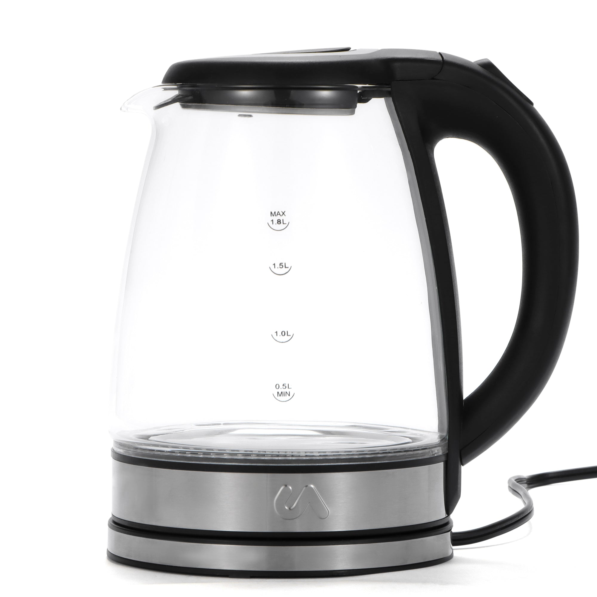 Uber Appliance 1.8L Glass and Stainless Steel Electric Tea Kettle Water Boiler and Heater, BPA Free, cordless with Blue LED Light