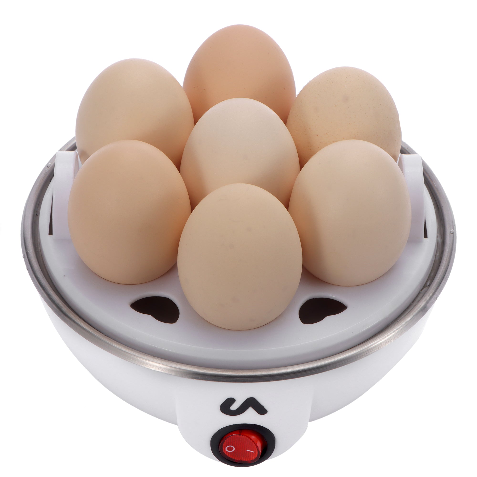 The Uber Appliance Deluxe Rapid Egg Cooker tray can cook up to 7 eggs in one go, simply add water, place the eggs in the tray, cover and flip the switch. Once it is finished cooking the switch auto-shuts off to let you know your eggs are ready! how easy is that!